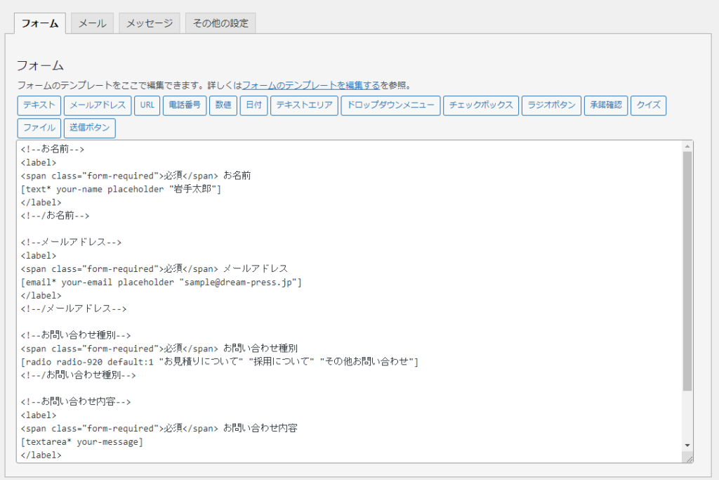 フォームの内容が表示されます。