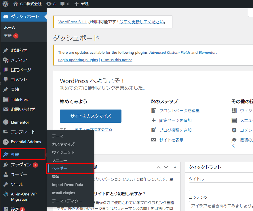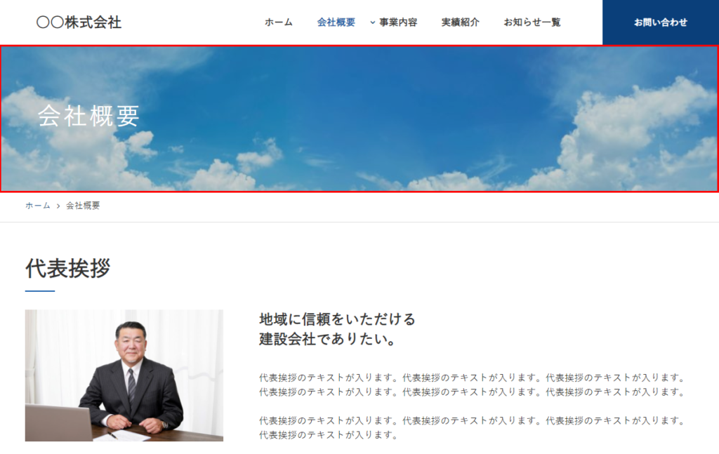 下層ページのヘッダー背景画像(赤枠の部分)を変更する場合