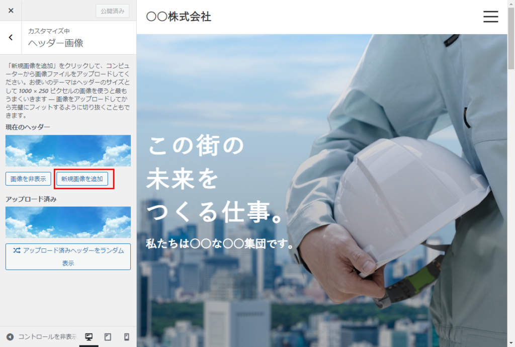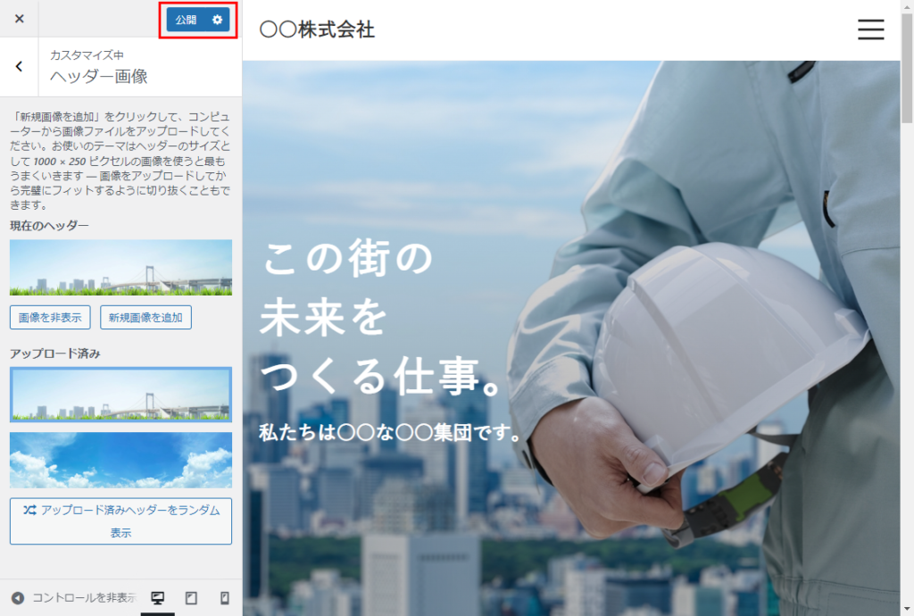 ヘッダーの画像サイズは1000 × 250pxの画像を使うとうまく表示されます。