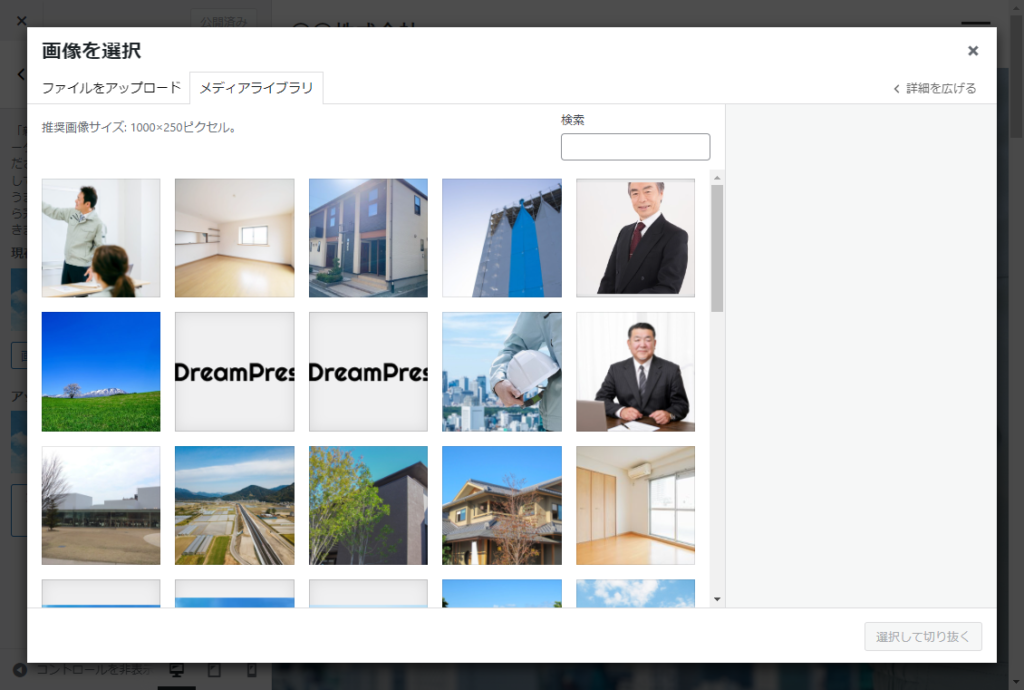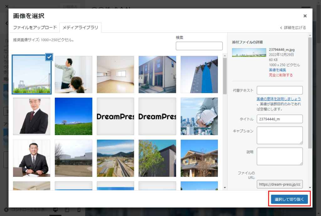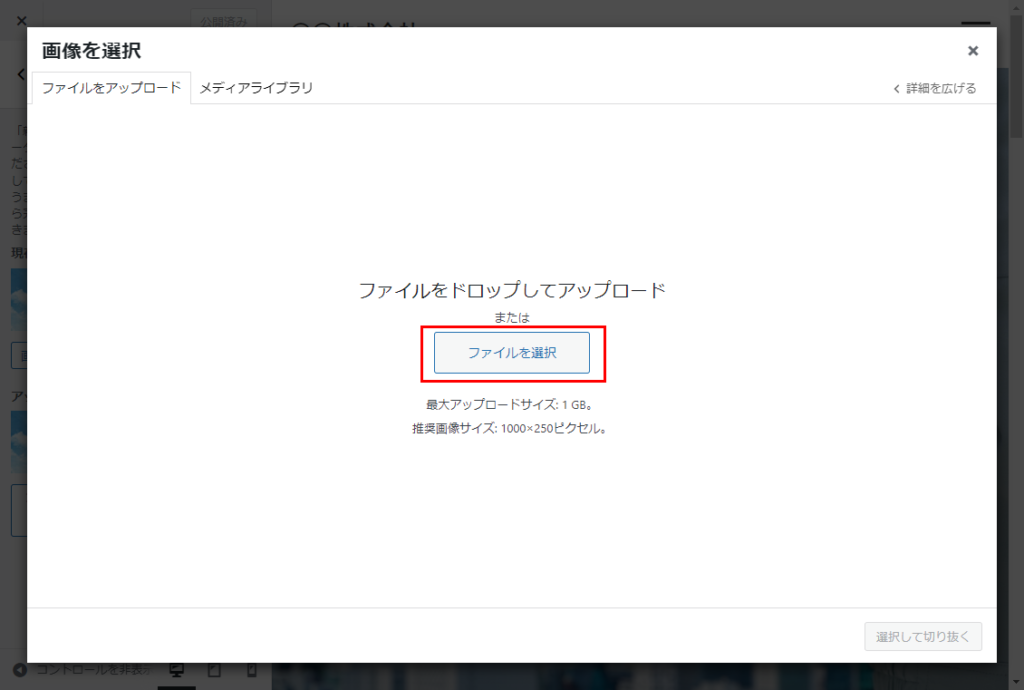 (既存(アップロード済)の画像を使用する場合は「メディアライブラリ」内の画像を選択します)