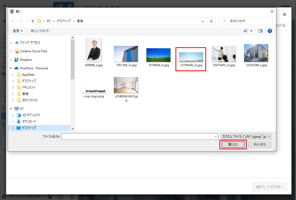 画像がアップロードされるので、「選択して開く」ボタンをクリック