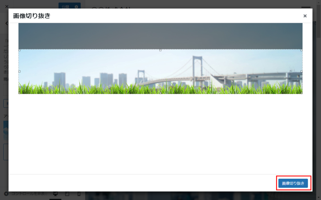 矩形ボックスを切り抜きたい位置にドラッグして移動させて「画像切り取り」をクリック