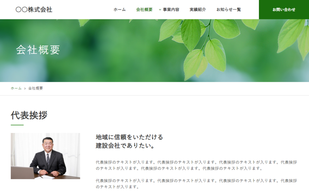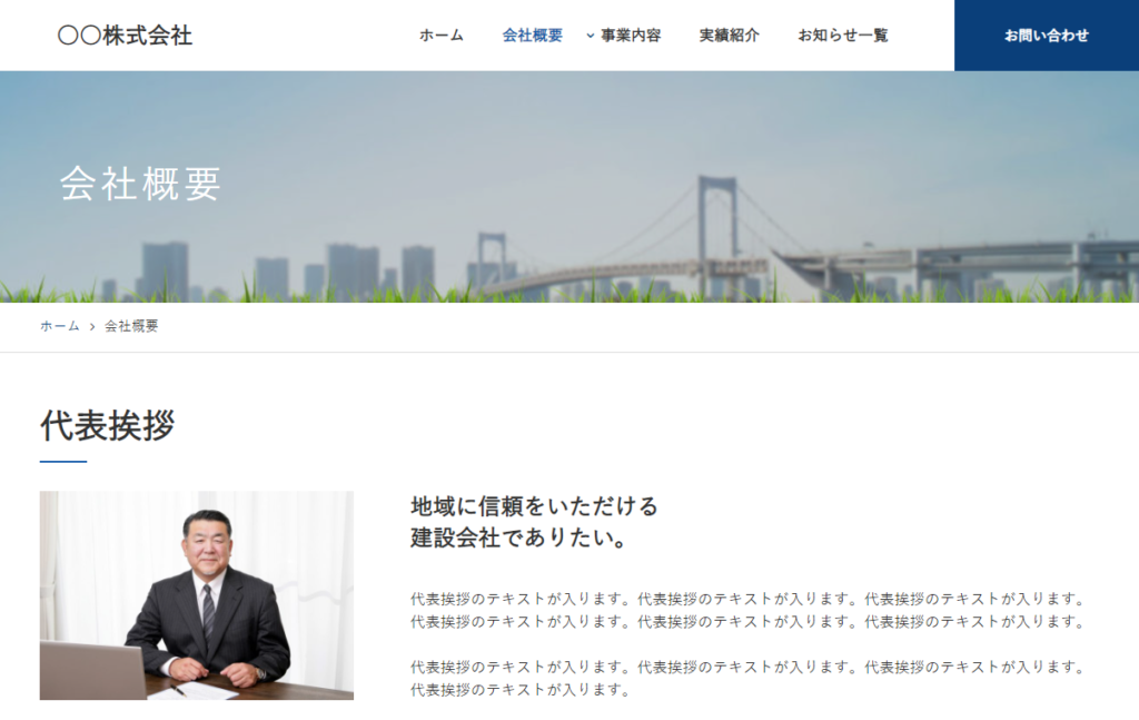 下層ページのヘッダー部分は、白いタイトル文字を目立たせるために背景画像の上に少し暗い半透明の色を重ねています。(実際の画像よりも暗い見えるのはそのためです)