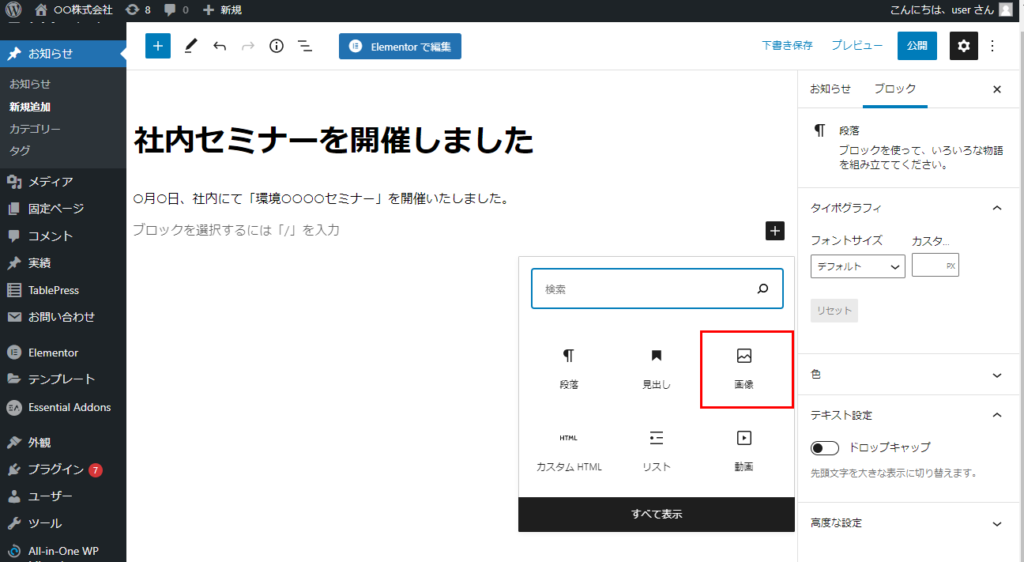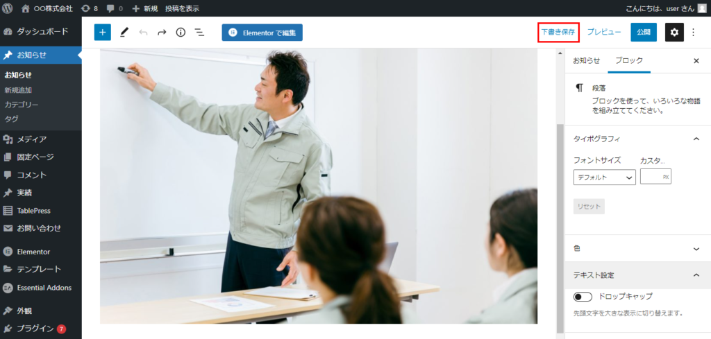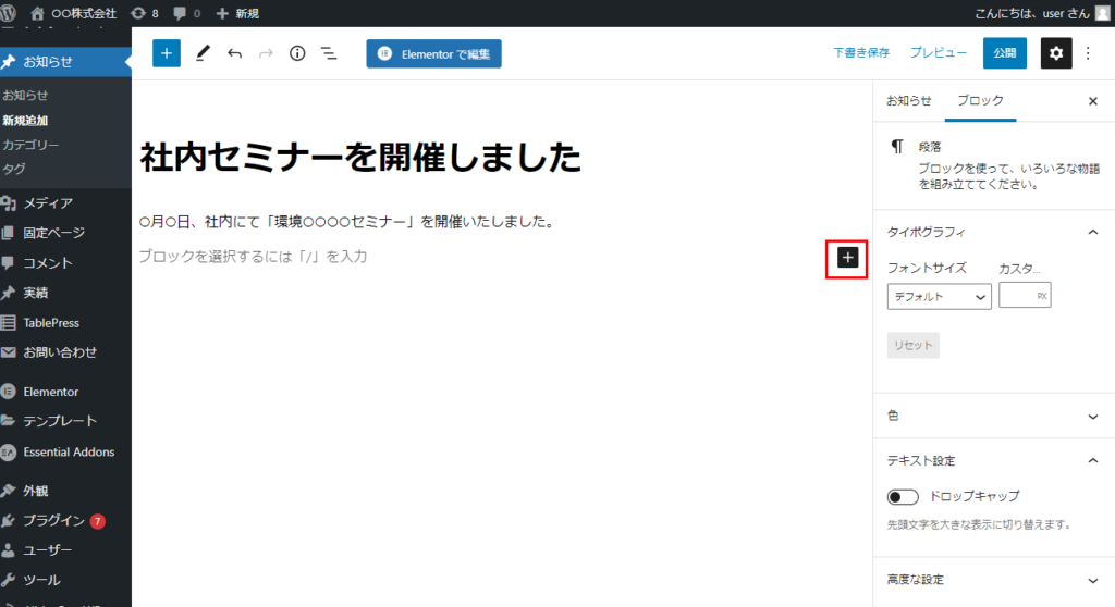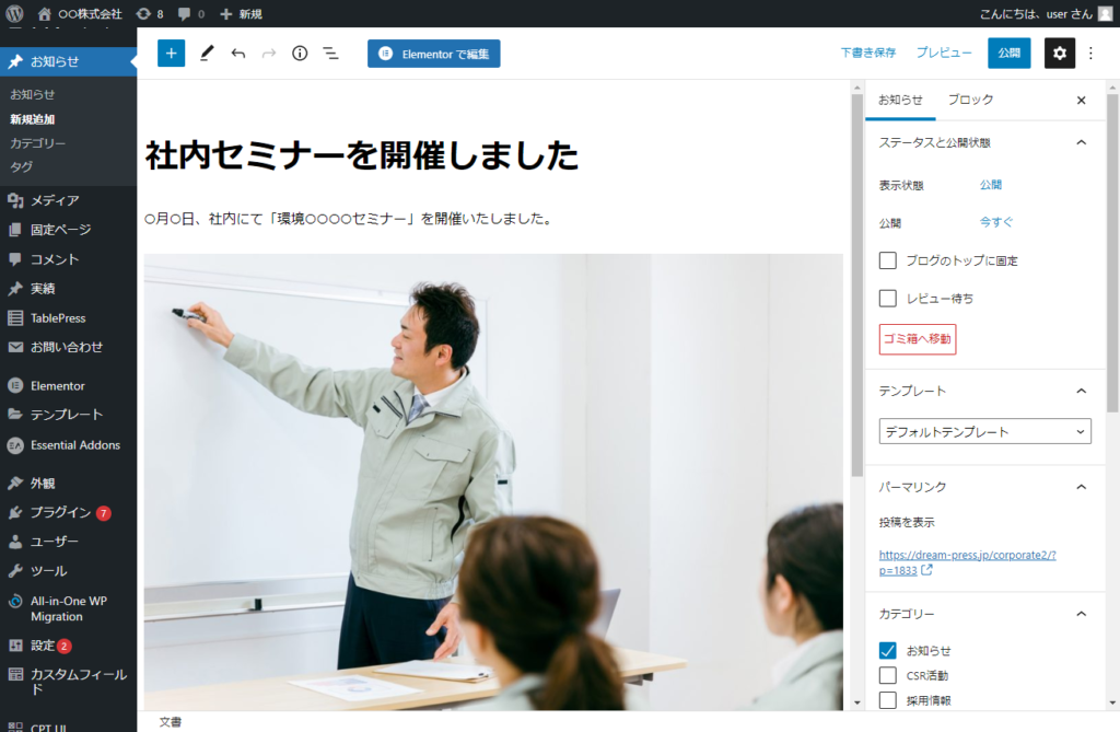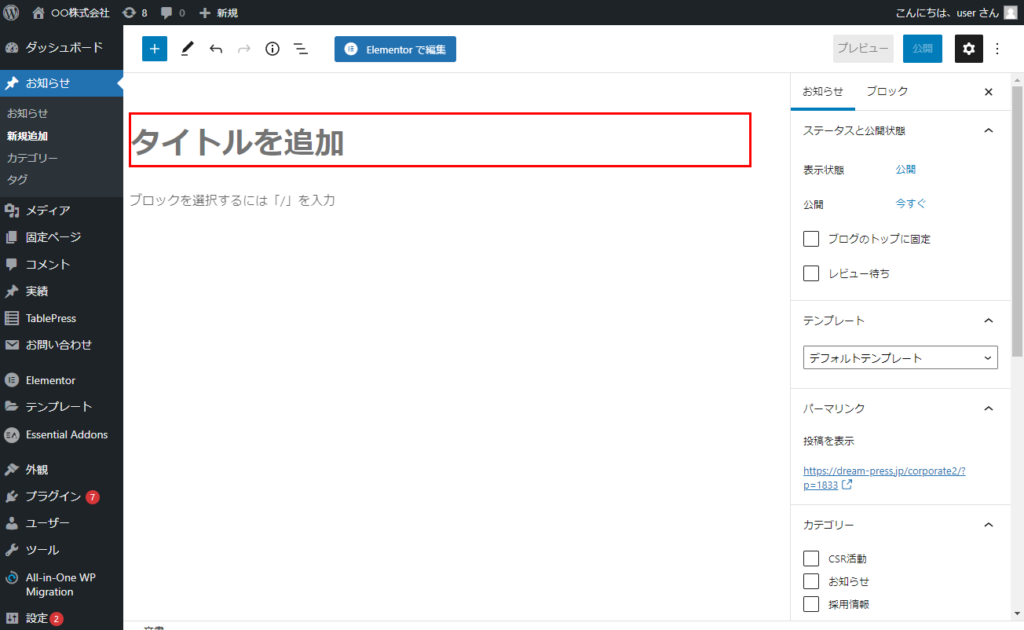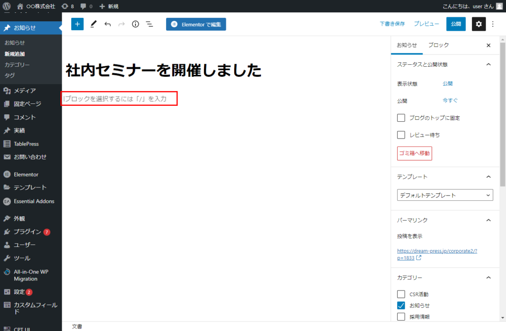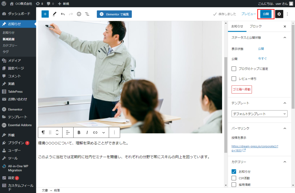 記事が完成したら、「公開」ボタンをクリックして公開します