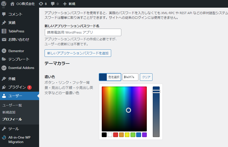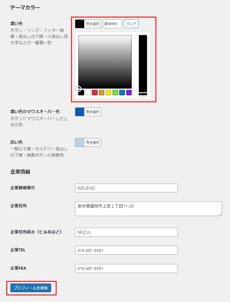 任意の色を選択し、一番下の「プロフィールを更新」ボタンをクリック