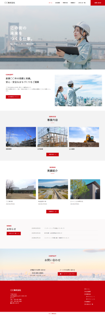 テーマ「コーポレート」は、管理画面上から主な3色を選択することができます。サイトに合わせてお好みの色に変更することが可能です。