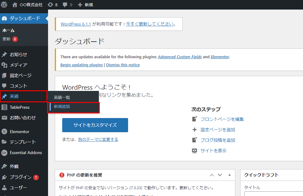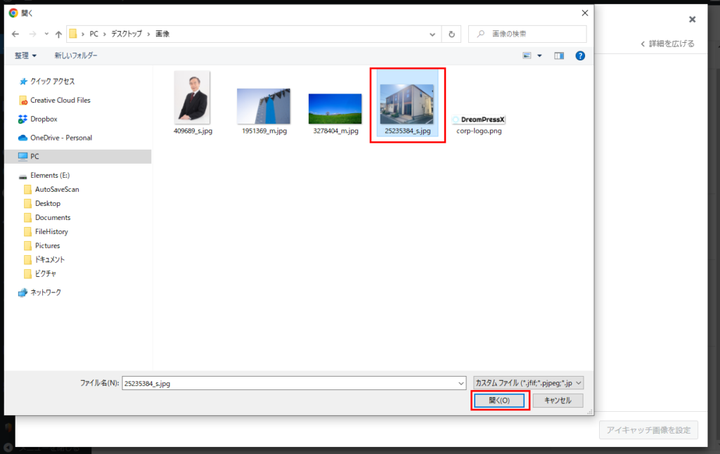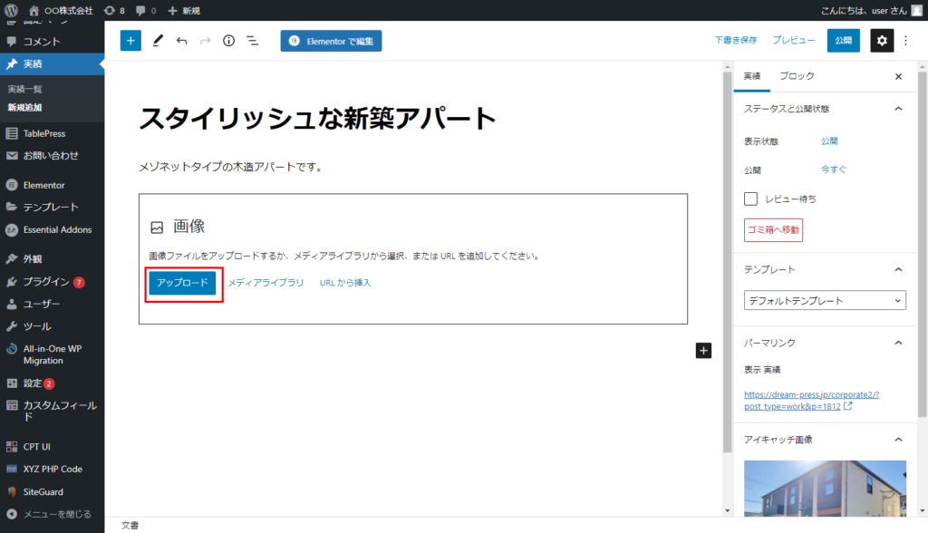 (既存の画像を使用する場合はメディアライブラリ内の画像を選択)