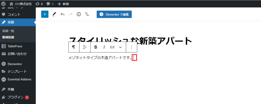 説明文の最後のテキストにカーソルを合わせて「Enter」キーを押す